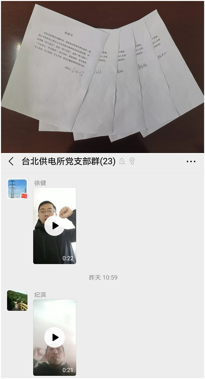 為充分貫徹落實(shí)黨中央關(guān)于打贏疫情防控阻擊戰(zhàn)的重要指示精神。2月13日,臺北供電所黨支部開展了“防控疫情,我們在行動”主題黨日活動。該支部以“我是黨員我宣誓”、“疫情防控我承諾”、“我為疫情防控獻(xiàn)一策”系列活動,充分利用網(wǎng)絡(luò)直播平臺和微信APP,通過錄制個人宣誓短視頻、承諾書簽字、集體線上學(xué)習(xí)等方式方法,號召廣大黨員同志充分發(fā)揮黨員先鋒模范作用,在抗擊疫情的關(guān)鍵時刻,必須服從命令、聽從指揮;堅守崗位、恪盡職守;堅定信心、沖鋒在前;不忘初心,牢記使命;堅決打贏疫情防控阻擊戰(zhàn)。(錢明華)