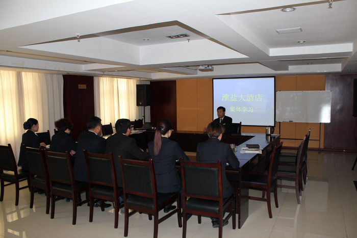 11月21日上午,淮鹽大酒店組織領(lǐng)班以上領(lǐng)導(dǎo)干部,再次集體學(xué)習(xí)酒店管理方面的知識。