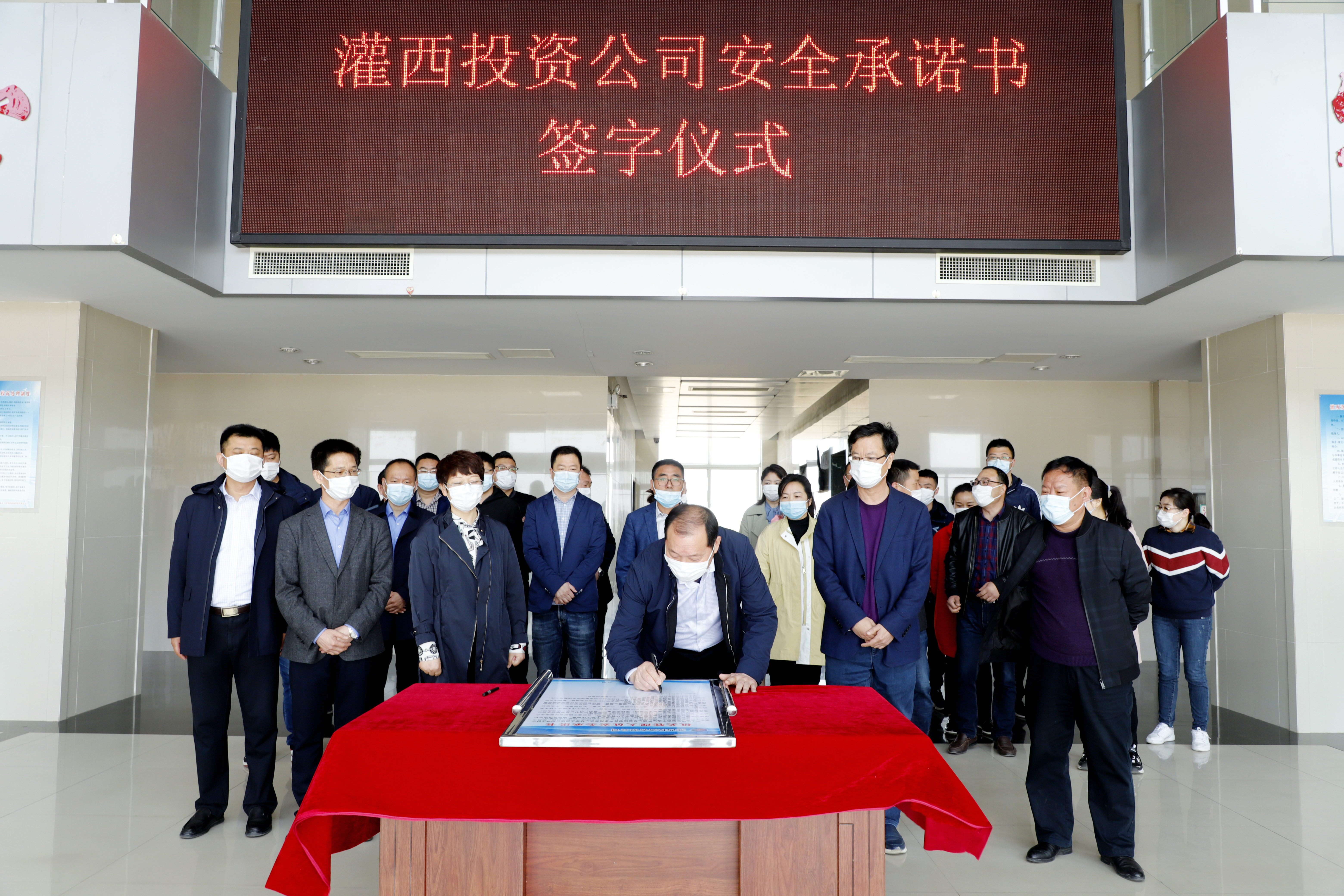 為確保安全生產(chǎn)工作的落實,4月28日上午,灌西公司舉行了安全生產(chǎn)承諾書簽字儀式。在布置一新的簽字現(xiàn)場,黨委書記、董事長、總經(jīng)理李國文帶頭在承諾書上鄭重地簽下了自己的名字。