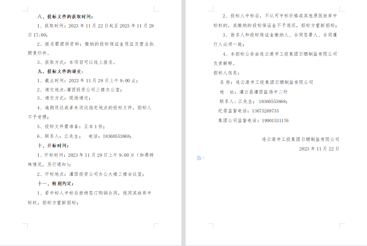 連云港市工投集團(tuán)日曬制鹽有限公司2023年度員工工作服采購項(xiàng)目邀請招標(biāo)公告