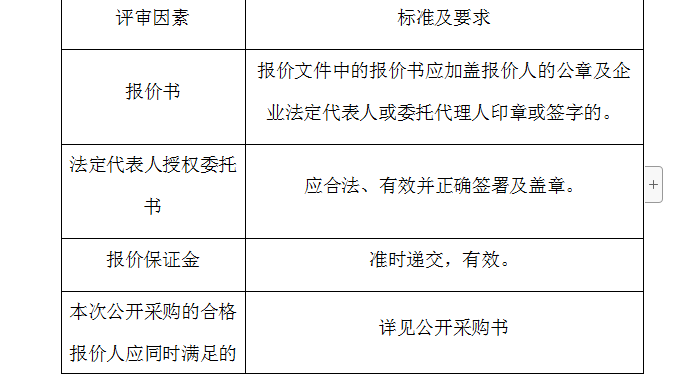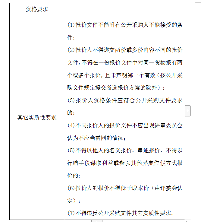 2、評審委員會(huì)將根據(jù)以下標(biāo)準(zhǔn)對各報(bào)價(jià)人進(jìn)行初步評審,有一項(xiàng)不符合要求的,作否決報(bào)價(jià)處理,不進(jìn)入詳細(xì)評審。