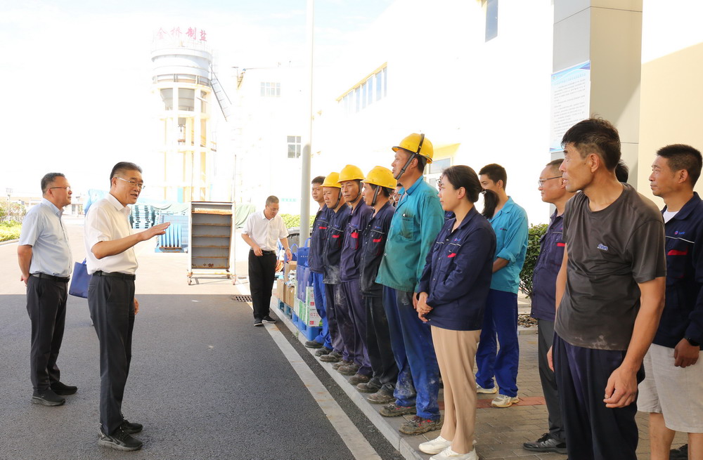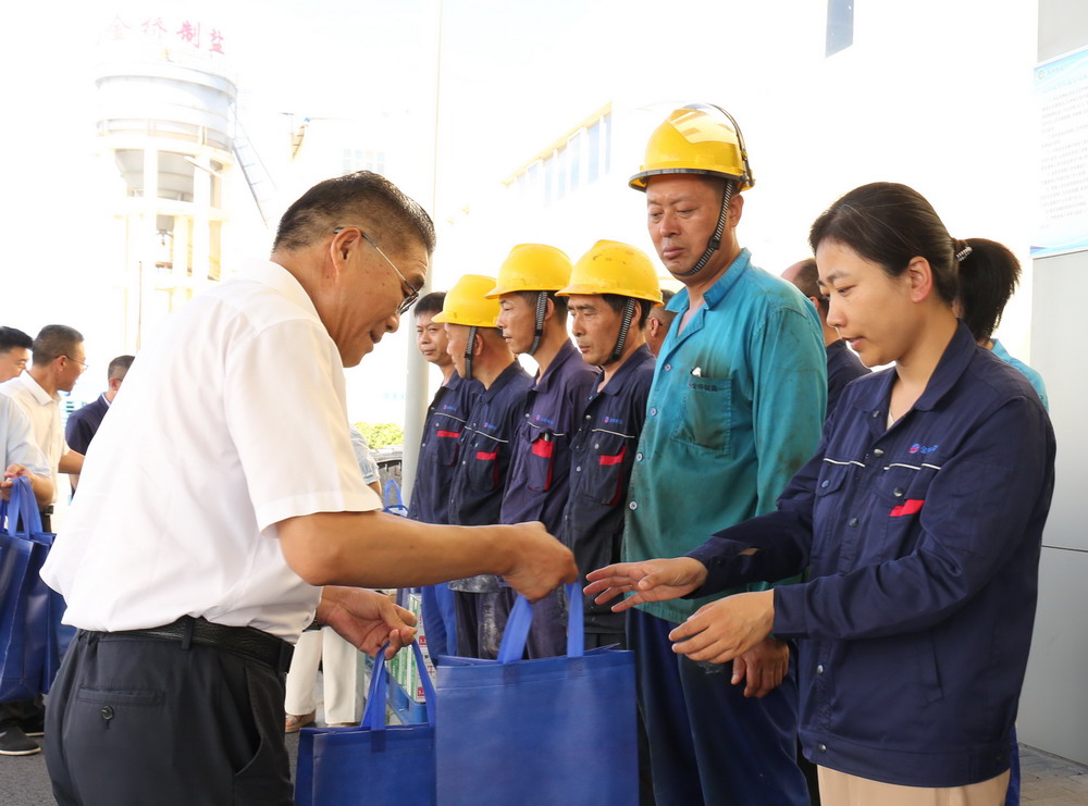 7月8日,集團(tuán)公司副總經(jīng)理劉承志來金橋制鹽公司“送清涼”,走訪慰問堅守在高溫崗位的一線職工。