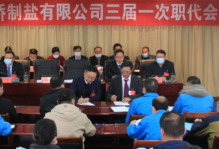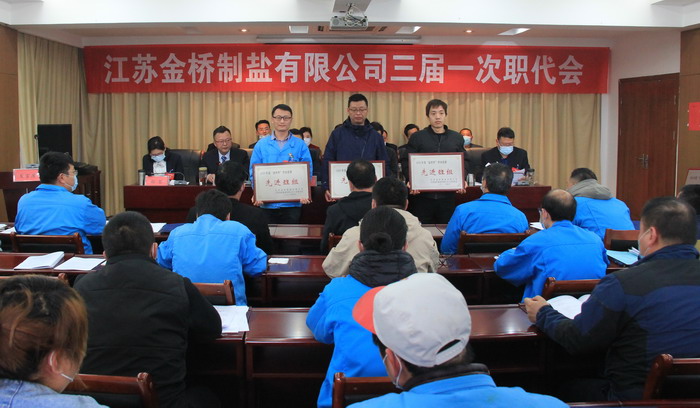 大會簽訂了《2021年度集體合同》、《2021年度經(jīng)營認標責(zé)任書》,與會代表認真審議通過了總經(jīng)理工作報告,通過了大會決議、有關(guān)方案和意見。加工鹽車間、包裝鹽車間、銷售部依次作了表態(tài)發(fā)言。大會表彰了第九屆“金橋杯”勞動競賽、2020年“大干四季度”勞動競賽的先進集體和先進個人以及2020年度“金橋工匠”。(金宣)