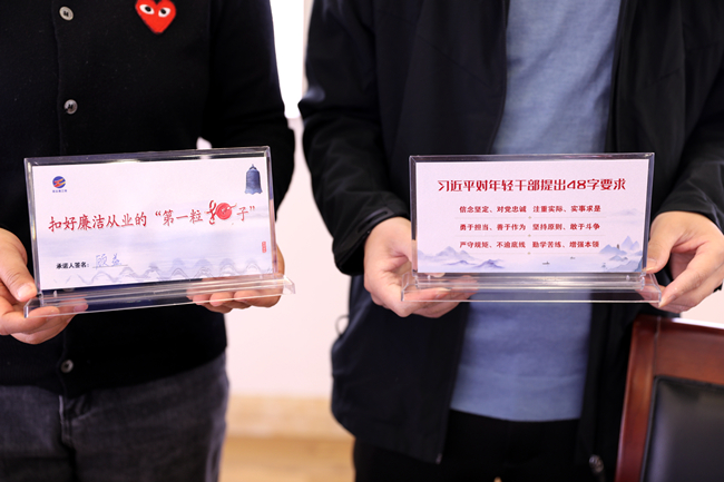 ? ? ? ?會(huì)后,公司紀(jì)委為10名新提拔干部發(fā)放了廉潔承諾桌牌,提醒他們常把“廉”字記心間,扣好廉潔從業(yè)的“第一??圩印?。(青紀(jì))