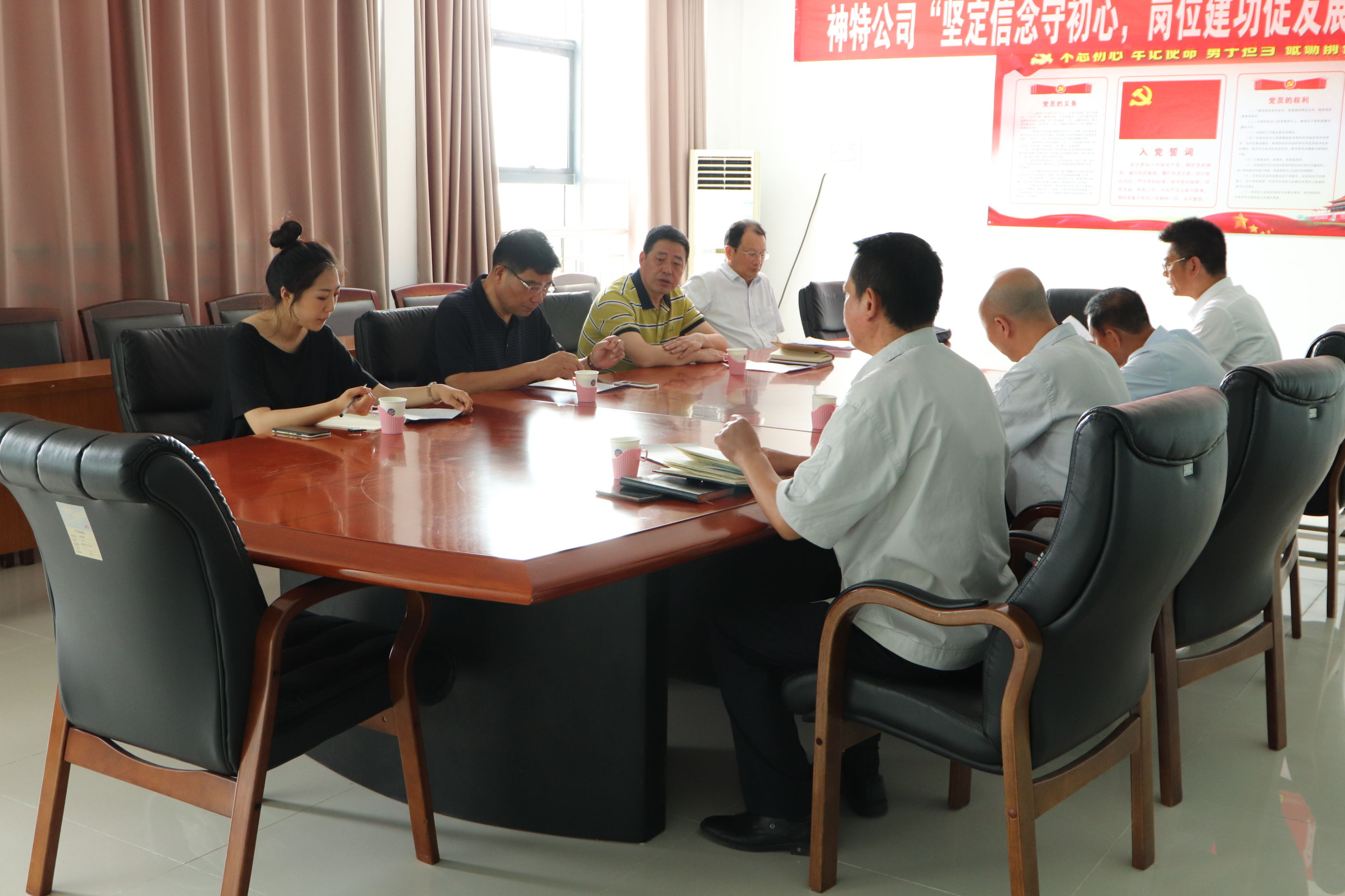 調(diào)研會上,副書記袁忠圍繞黨組織的領(lǐng)導(dǎo)作用、人財物保障、“書記項目”、陣地建設(shè)、離退休黨員教育管理專項整治、“七一”活動、“學(xué)習(xí)強國”、先進(jìn)典型培育選樹、黨建特色工作等方面,就上半年黨建工作開展情況進(jìn)行了匯報。黨支部書記鄒德兵、總經(jīng)理韓立新就黨建工作與調(diào)研組成員交換了意見。江舜軍部長對于我公司上半年黨建工作給與肯定,體現(xiàn)四個特點,即“四個強化”有內(nèi)容、“三組聯(lián)建”有新意、“三亮三掛”有特點、陣地建設(shè)有思路,針對下步工作,要求在凝心聚力、載體創(chuàng)新、典型選樹、文明創(chuàng)建上下功夫,持續(xù)深化黨建工作,不斷彰顯黨建實效,引領(lǐng)和推動企業(yè)經(jīng)濟工作向穩(wěn)向好開展。