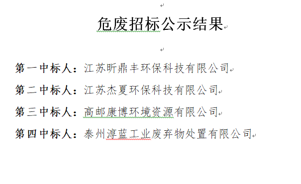 危廢招標公示結(jié)果