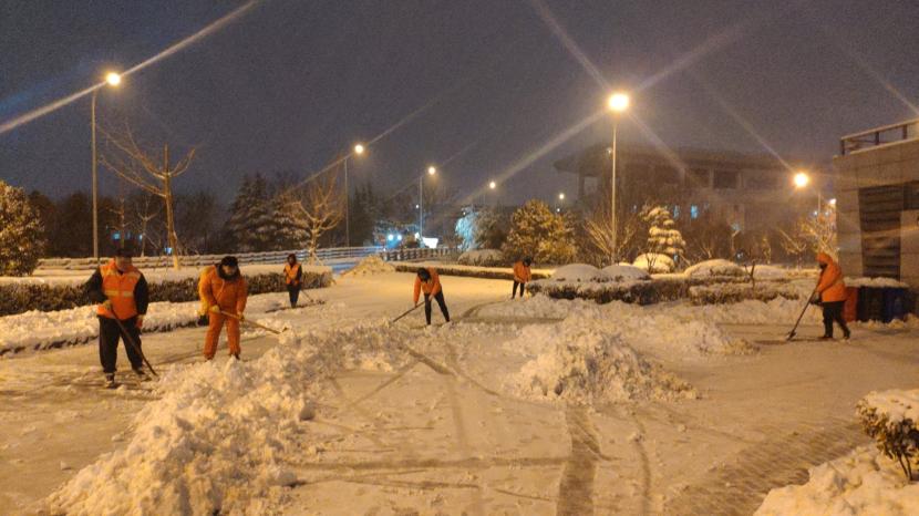 上午10時許,暴雪如約而至。裝有融雪劑的車輛全部整裝待發(fā),聞令而動,采取“人工+機械”不間斷作業(yè)模式,對轄區(qū)主次干道、橋涵、火車站東站、創(chuàng)智大廈等帶坡路段及時拋撒融雪劑,采取“滾刷+鏟車”組合方式,反復排掃路面積雪,確保主次干道、帶坡路段通暢無冰。