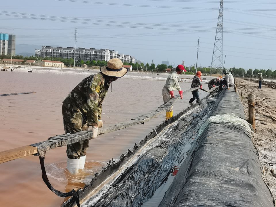 礦鹽生產(chǎn)班組提前謀劃原鹽集運(yùn)前的準(zhǔn)備工作。2022年秋扒鹽已經(jīng)順利落下帷幕,工人們利用收鹽后的空隙對(duì)鹽池板進(jìn)行修整、整理收放系統(tǒng)以及將扒鹽機(jī)械進(jìn)行保養(yǎng)入庫(kù)等等。同時(shí),修整運(yùn)鹽主干道,地基較軟處以鋼板鋪墊,確保運(yùn)鹽車輛安全通過(guò)。排查廩基周圍高低壓線路,在作業(yè)的同時(shí)堅(jiān)守安全生產(chǎn)底線。等待天氣轉(zhuǎn)好,將立即進(jìn)行原鹽集運(yùn)。