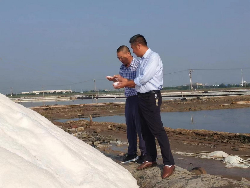 今年的秋扒,對海州灣公司,對整個臺北投資公司意義非凡。早在2019年,由于堿廠關(guān)停的消息,加之開發(fā)區(qū)連續(xù)征地,原大浦工區(qū)一年一大變,直至僅剩下一個生產(chǎn)單元,取而代之的是猴嘴生活館和恒大小區(qū)在鹽灘拔地而起。與此同時,原鹽協(xié)議價格還持續(xù)走低。鑒于此,經(jīng)過投資公司決策,注重降本增效,礦鹽停產(chǎn),采取自制鹵水的方式維持到堿廠關(guān)停。然而2021年底,堿廠雖然關(guān)停了,但是原鹽價格迅速拉升?!拔覀円o跟市場變化,相機(jī)而動”。投資公司準(zhǔn)確把握市場規(guī)律,進(jìn)一步推進(jìn)思想解放,及時調(diào)整生產(chǎn)戰(zhàn)略:“只要有利于企業(yè)創(chuàng)收的,我們一定要干,還一定要干成?!痹诠军h委正確領(lǐng)導(dǎo)下,海州灣把征地后的大浦、海州灣公司整合,零星邊角地全部利用起來,大打一場礦鹵復(fù)產(chǎn)戰(zhàn)、升級戰(zhàn)。海州灣公司克服前所未有的困難,廣大員工發(fā)揚“四拼”精神,大年初三就全員到崗修灘,到2月底已經(jīng)修整2000公畝。然而灌池關(guān)鍵節(jié)點的3月,突然暴發(fā)的新冠肺炎疫情打亂了生產(chǎn)節(jié)奏。然而公司廣大干群沒有放棄,大張旗鼓地開展“黨旗飄一線,戰(zhàn)疫沖在前”“當(dāng)虎將,打頭陣”黨內(nèi)專題實踐活動,一邊強(qiáng)化疫情防控,一邊加班加點抓生產(chǎn),不僅完成灌池面積1930公畝,還實現(xiàn)一季度池內(nèi)長鹽3000噸,銷售鈣液3.2萬方,實現(xiàn)收入118.44萬元,完成季度指標(biāo)151.85%。于逆境中實現(xiàn)了“開門紅”。