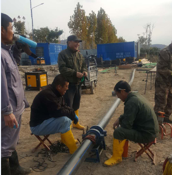 鏡頭二:負(fù)責(zé)匯晶路新建橋梁鈣液管道遷建工程的供鹵組聯(lián)合復(fù)曬灘人員早早投入到施工操作中,該項工程是為了配合開發(fā)區(qū)匯晶路與躍湖路新建連通橋梁的需要,需要遷改鈣液管道160米,工程造價6萬元。
