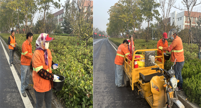 ? ? ? 工作中,班長李洪利、副班長李明春,帶領(lǐng)綠化班組30余人,對云港路、祥和路仁和路,進行施肥作業(yè)?!皥@林衛(wèi)士”手拿施肥工具,2-3人為一小組,采用徒步拋灑方式進行作業(yè),縱三路的側(cè)分帶雪松,因長勢不良土壤環(huán)境因素,為重點施肥對象。云港路路線較長,采取分段作業(yè),重點突破。經(jīng)過一天的忙碌,完成既定路段的施肥任務。